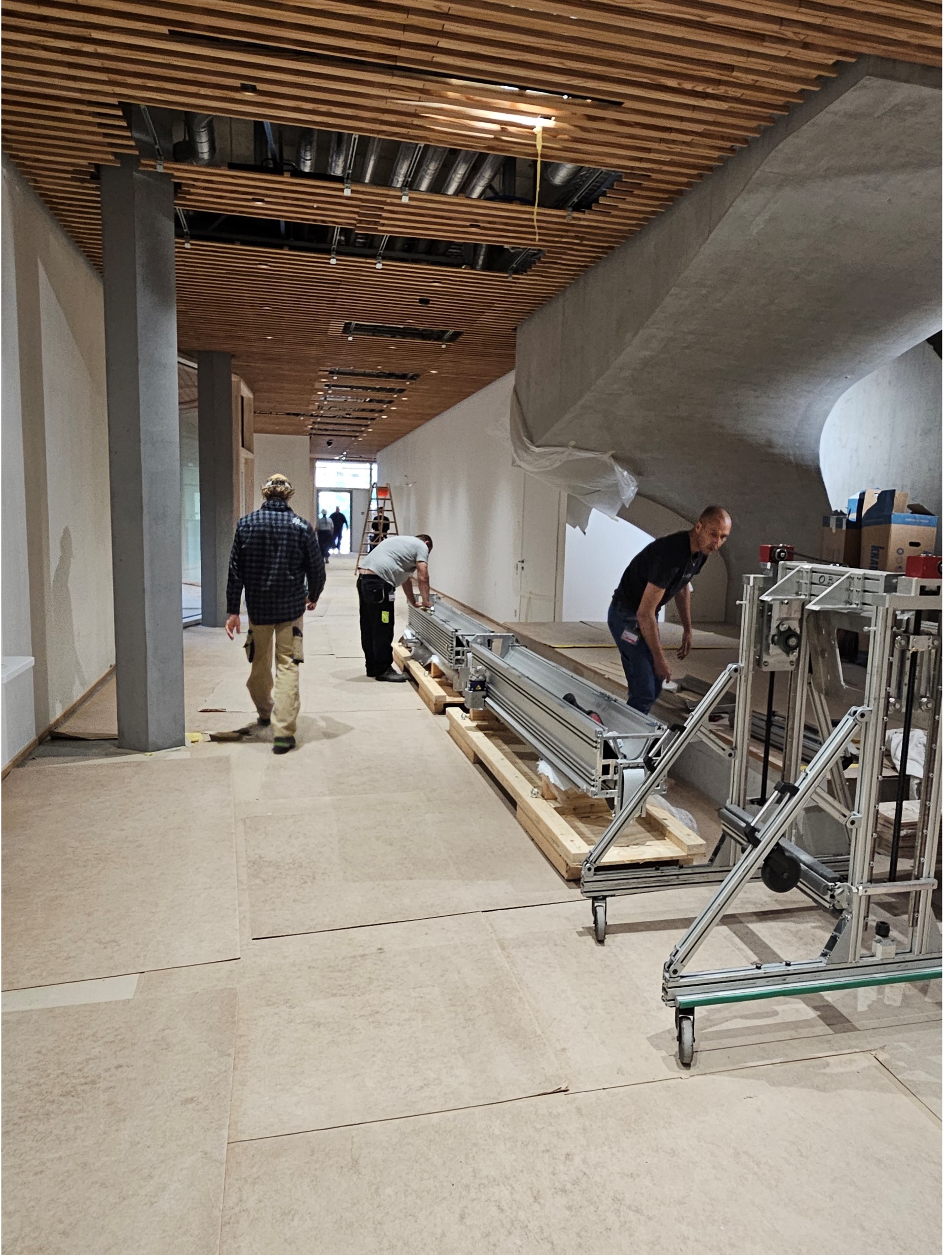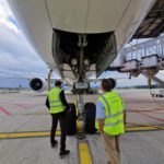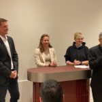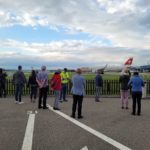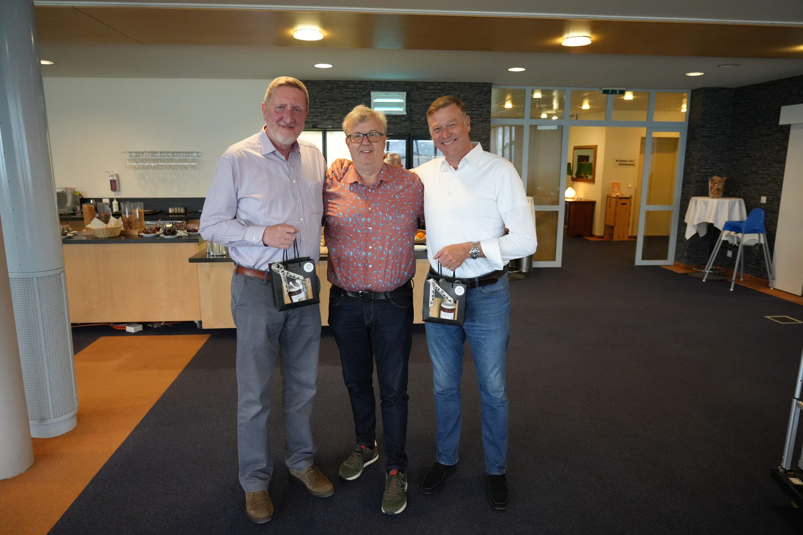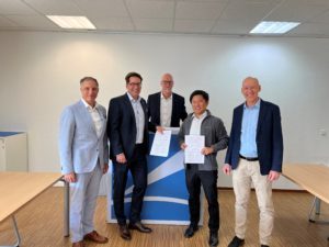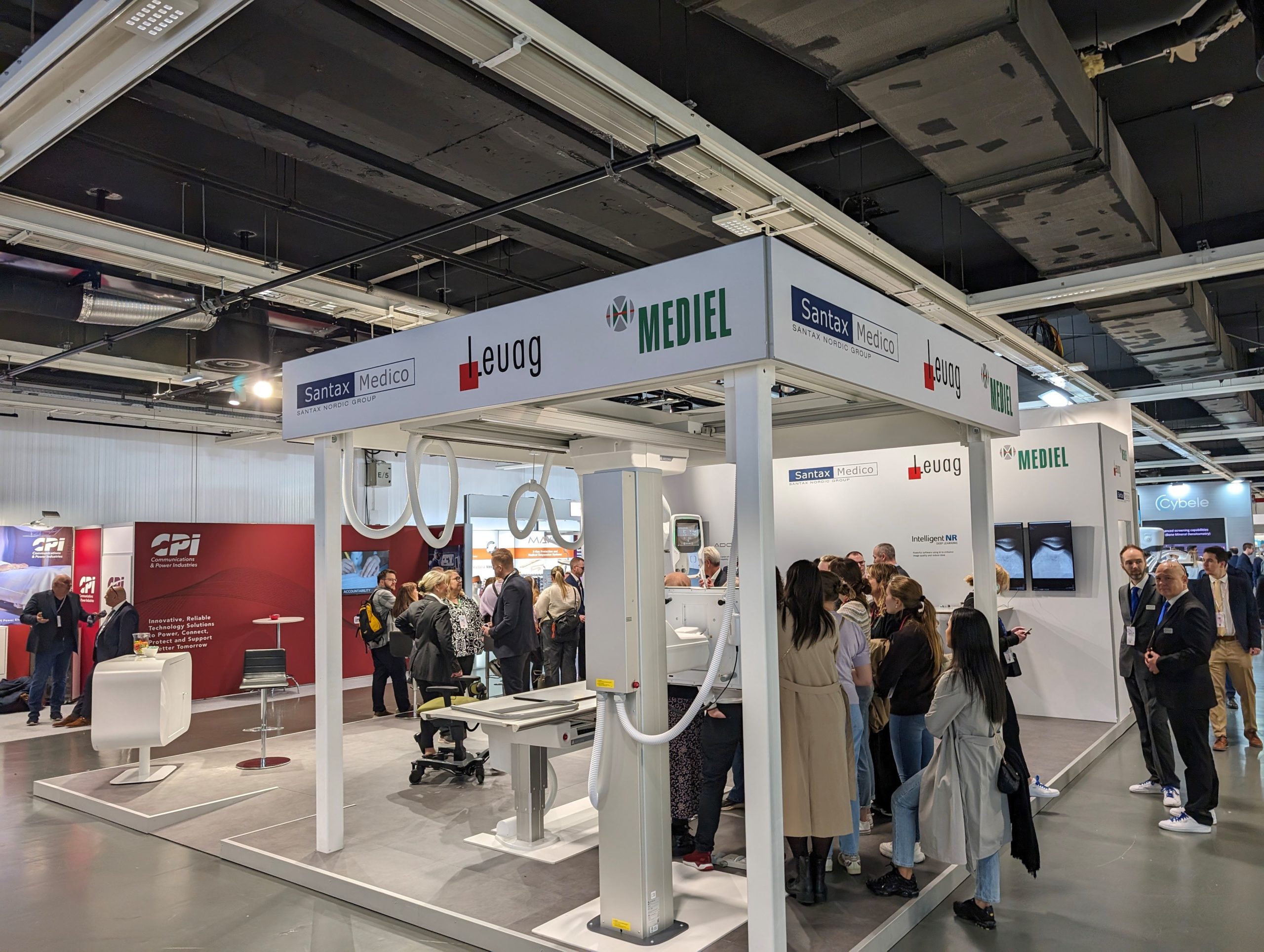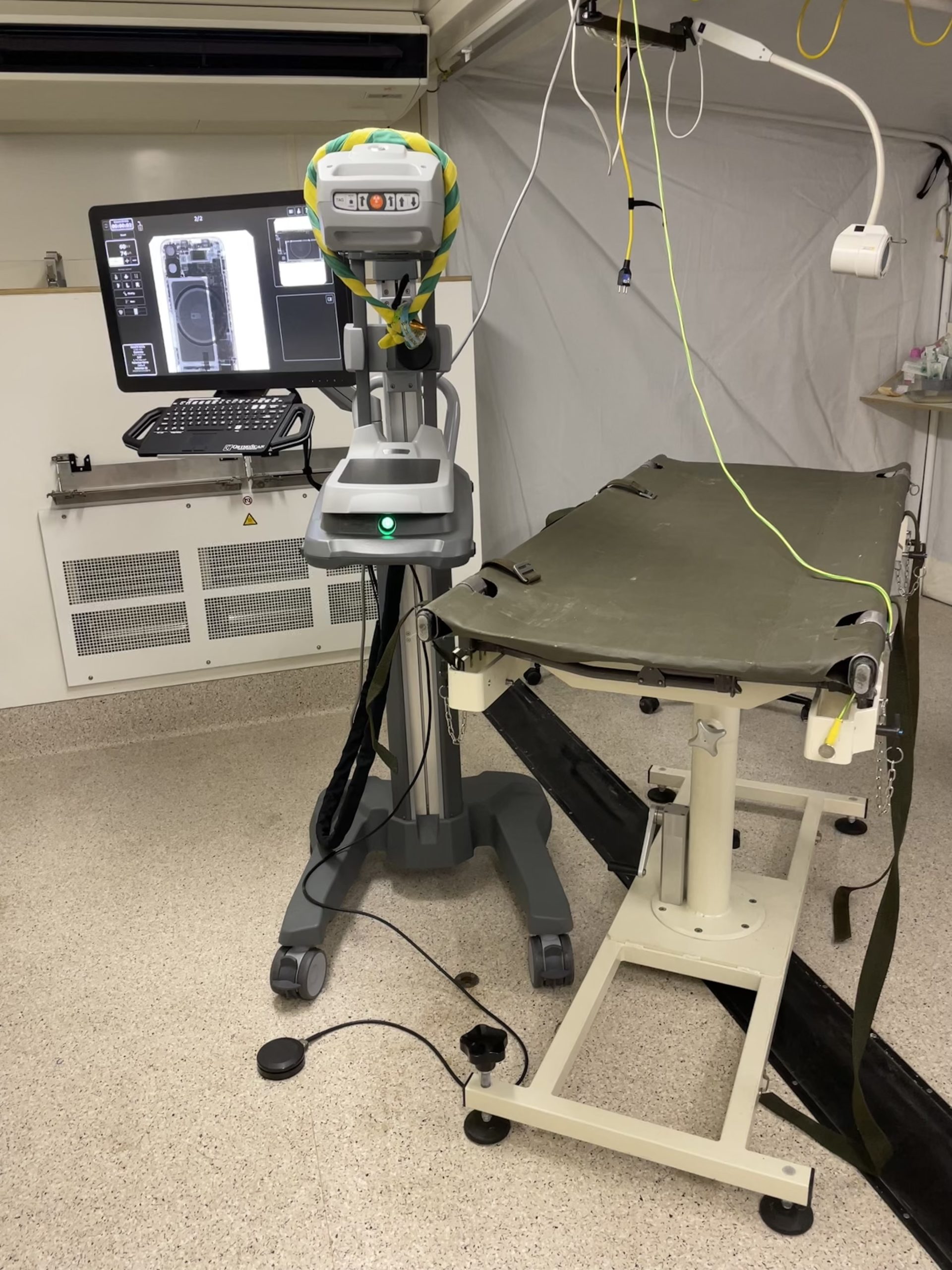 Vor der erfolgreichen Inbetriebnahme des bodenmontierten Geräts von links: Hamza Murtic (Serviceingenieur Leuag), Krisztián Vámos (Director of Operations Control-X Medical), Irene Steinmann (Applikation Leuag) und Bart van Ginkel (Technical Product Specialist Canon Medical Components).